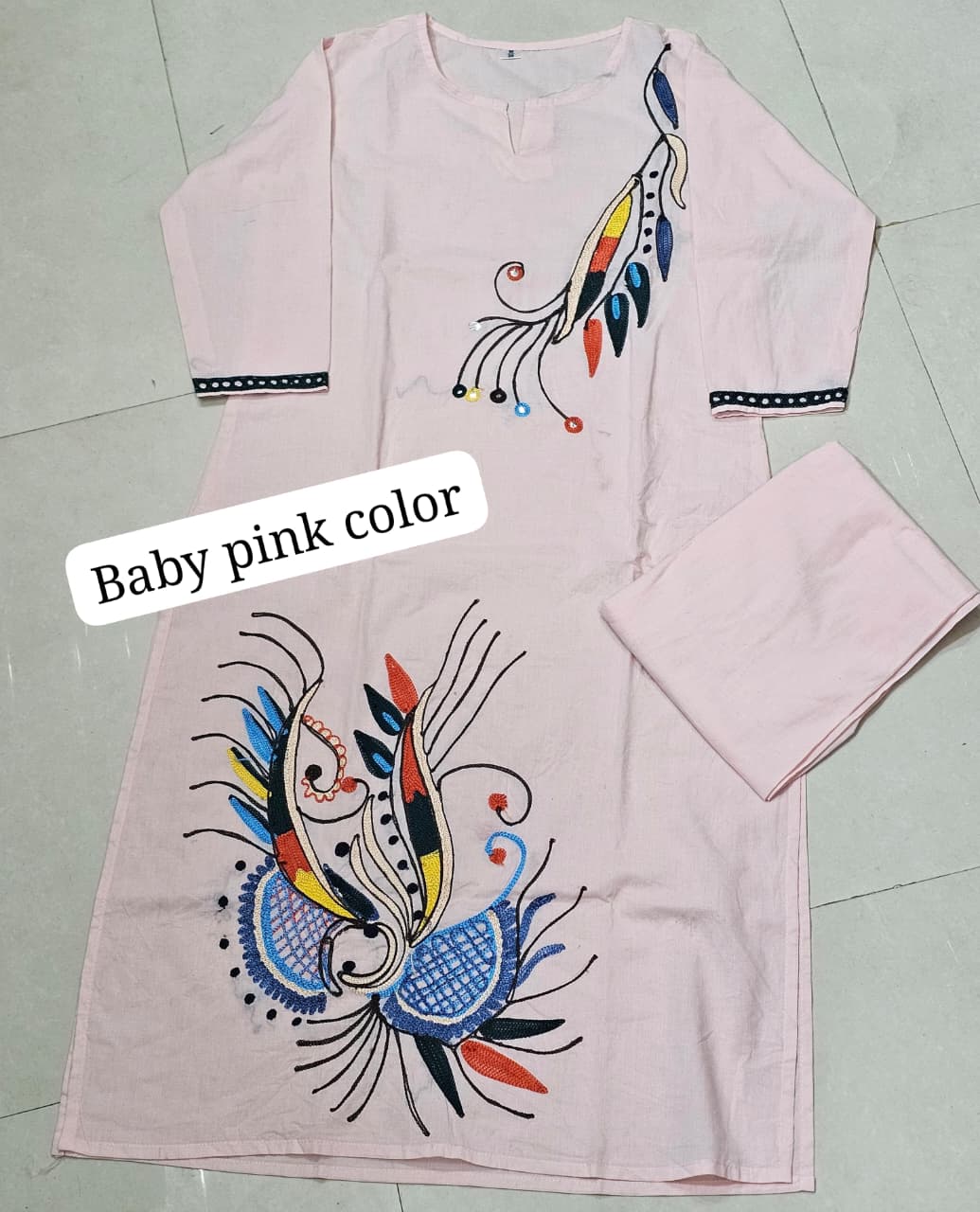 Step into grace and charm with this beautiful baby pink kurta set. Made from pure 60×60 cotton fabric and featuring full floral hand embroidery, this set brings comfort, elegance, and timeless style to your wardrobe. Perfect for casual outings, festive occasions, or relaxed gatherings.
