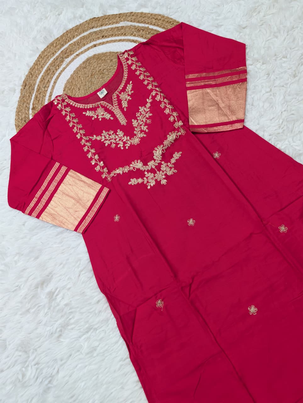 Upgrade your festive wardrobe with the KALGEE Women’s Pure Lagdi Viscose Silk Embroidered Kurta Set, crafted to deliver unmatched elegance and comfort. Designed with premium fabrics and intricate detailing, this outfit is perfect for weddings, functions, parties, and festive celebrations.