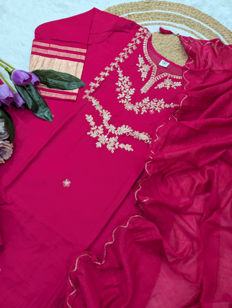 Dupatta: 2.2 Meter Heavy Chanderi Cotton Embroidered Dupatta for a complete royal look