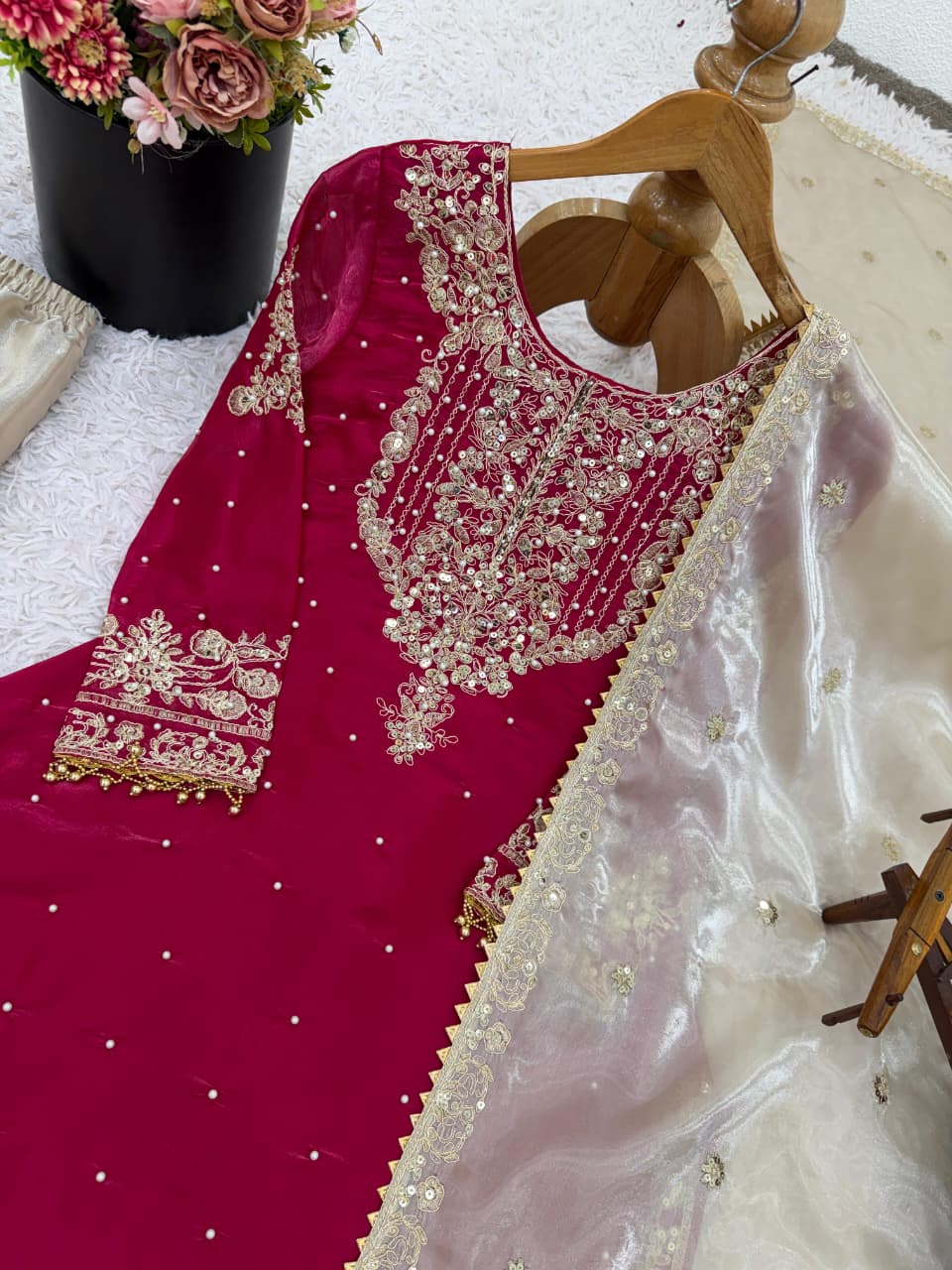 A stunning Top–Plazzo–Dupatta set that is fully stitched & ready to wear, offering top-level elegance and premium comfort.